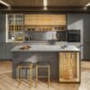 KAM – nowoczesny zestaw mebli kuchennych Dąb Sherman, Royal Grey i Pietra Antracytowa – PROJEKT
