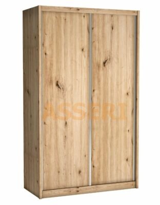 Mała, lecz pojemna szafa z drzwiami przesuwnymi. Idealna do małych wnętrz, dzięki dużej głębokości, pozwala na przechowywanie większej ilości rzeczy. Istnieje również opcja dodatkowych półek oraz lustra, które powiększy małą przestrzeń. Dzięki możliwości dobierania kolorów korpusów oraz frontów, na pewno świetnie wpasuje się w nasze pomieszczenie.
