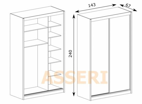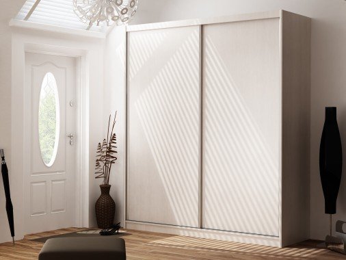 Mała, lecz pojemna szafa z drzwiami przesuwnymi. Idealna do małych wnętrz, dzięki dużej głębokości, pozwala na przechowywanie większej ilości rzeczy. Istnieje również opcja dodatkowych półek oraz lustra, które powiększy małą przestrzeń. Dzięki możliwości dobierania kolorów korpusów oraz frontów, na pewno świetnie wpasuje się w nasze pomieszczenie.