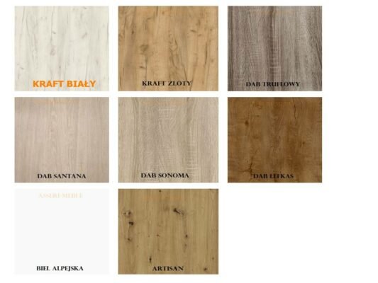 • płyta – laminowana płyta meblowa w podanym kolorze