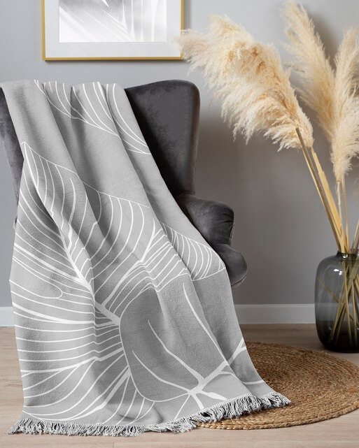 Koc Bawełniany 150×200 – JASNY SZARY z wzorem