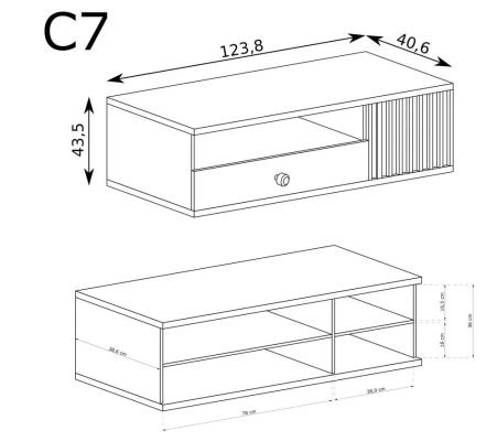 Napisz pierwszą opinię o „CALI-C7 szafka RTV z szufladą i lamelami 125 cm, z montażem DĄB ARTISAN”
