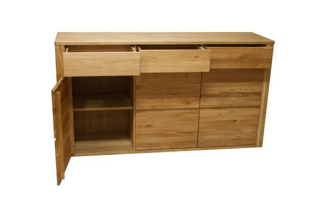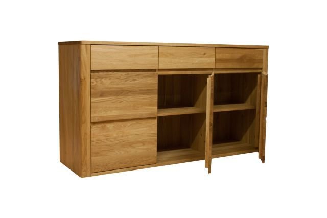 To nowoczesne meble do jadalni oraz salonu wykonane z drewna dębowego olejowanego w trzech kolorach.
