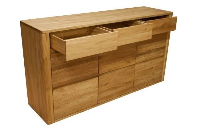 ORLANDO-49 dębowa szeroka komoda z szufladami – bianco, bursztyn, natura 180 cm