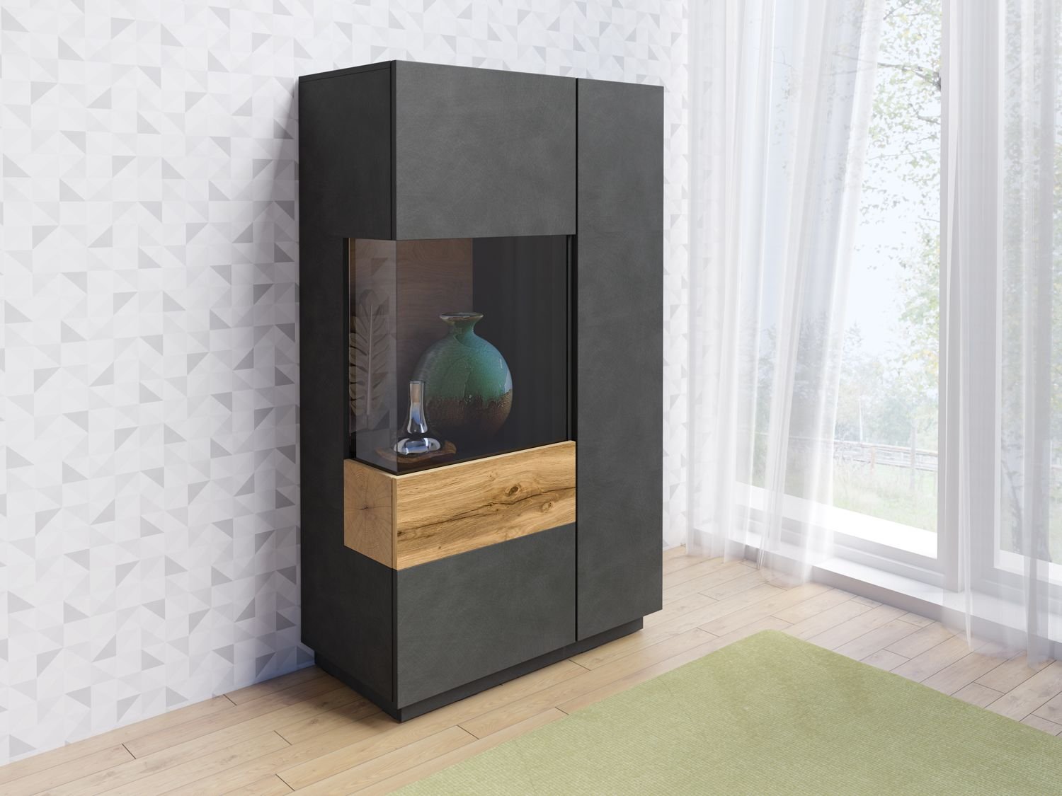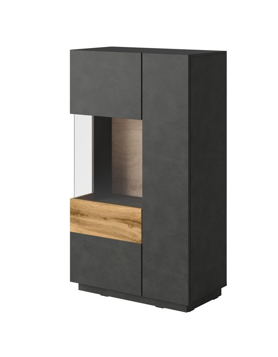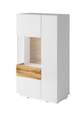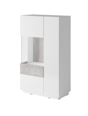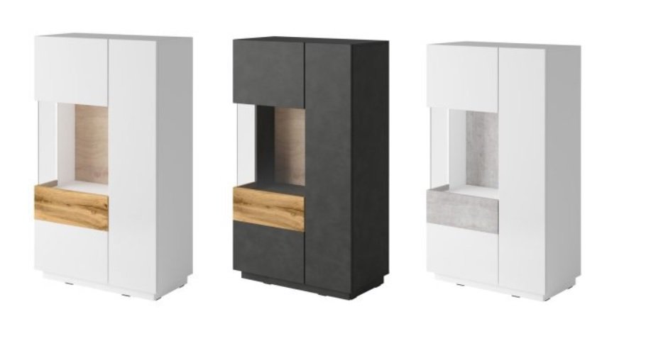SILKE 42 witryna dwudrzwiowa z przeszkleniem – BIAŁY POŁYSK – DĄB WOTAN – MATERA – BETON