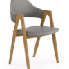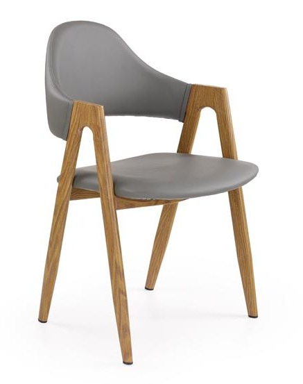 Krzesło K247 dysponuje  komfortowym oparciem i siedziskiem w kolorze szarym lub  białym, kolory te nadają meblowi eleganckiego wyglądu. Mebel wykonany  jest  z wysokiej  jakości ekoskóry, która odporna jest  na zarysowania oraz  otarcia. Prezentowany model krzesła posiada  nóżki wykonane ze stali malowanej w kolorze drewnopodobnym. Metalowy stelaż gwarantuje dużą wytrzymałość mebla oraz jego stabilności przez długie lata użytkowania. Tak nowoczesne  krzesło będzie znakomitym rozwiązaniem pomieszczeń  nowoczesnych, a zarazem eleganckich rozwiązań.