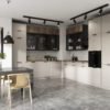 Prezentuje się imponująca zarówno w okazałej przestrzeni jak i małym mieszkaniu. Zaletą tego kuchni Italia jest możliwość łączenia różnorodnych dekorów z witrynami aluminiowymi. Italia posiada fronty imitujące strukturę naturalnego drewna jak również betonu, marmuru, czy kamienia. Czarne ramki w witrynach w połączeniu z antracytowym szkłem, delikatnym uchwytem oraz podświetleniem nadadzą całości niepowtarzalnego wyglądu.Szafki witrynowe w standardzie wyposażone są w półki szklane i zawiasy BLUM.