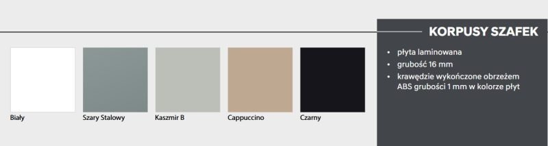 • wybranej kolorystyki frontów oraz blatu