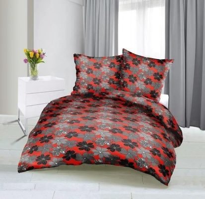 KWIATY bawełniana pościel z kory 200 x 220 cm, odcienie czerwieni, szarości, czerni