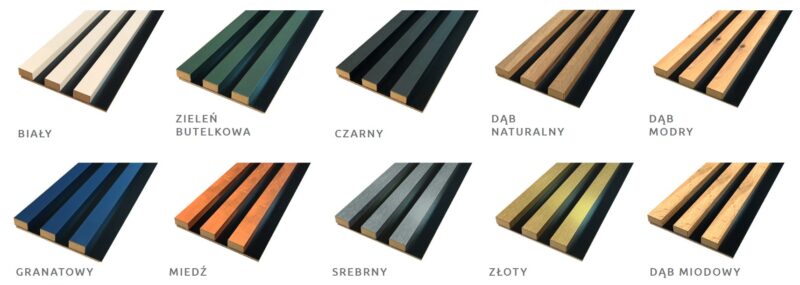 Dostępna kolorystyka lameli na podkładzie czarnym: