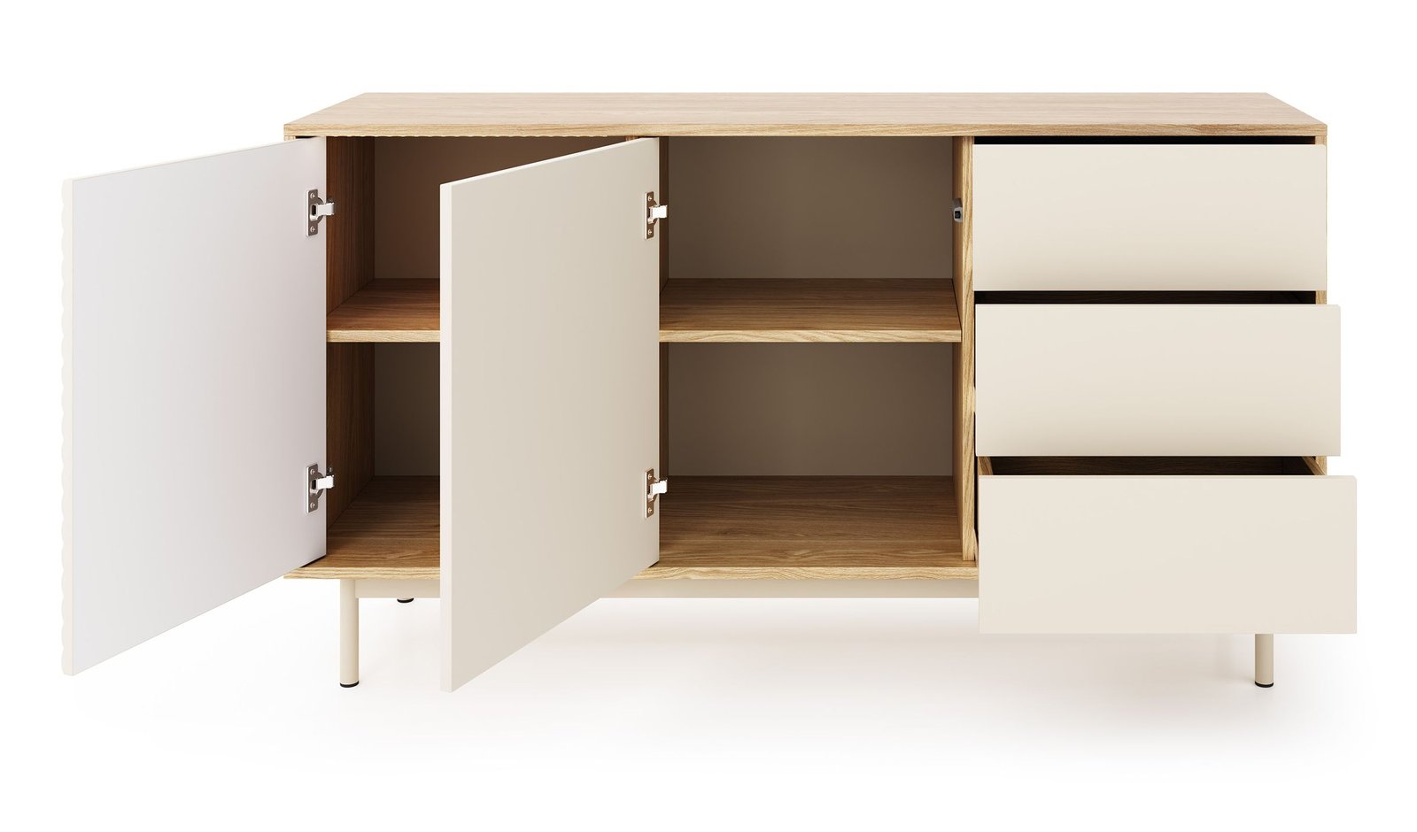 • Praktyczny układ –  szuflady i szafki z frontami zapewniają dużo miejsca na przechowywanie i łatwą organizację
