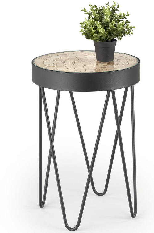 materiał: szkło / drewno lite modrzewiowe / stal malowana proszkowo