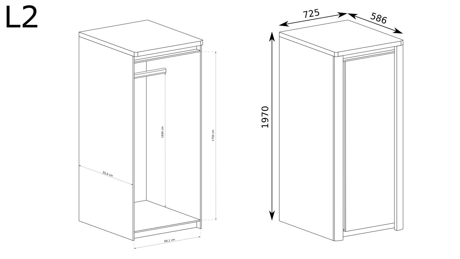 LIVINIO-2 wąska szafa jednodrzwiowa z drążkiem lub półkami 72,5 cm