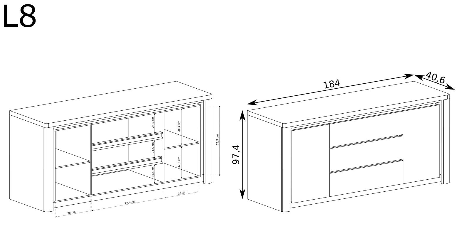 LIVINIO-8 podświetlana komoda dwudrzwiowa z szufladami 184 cm