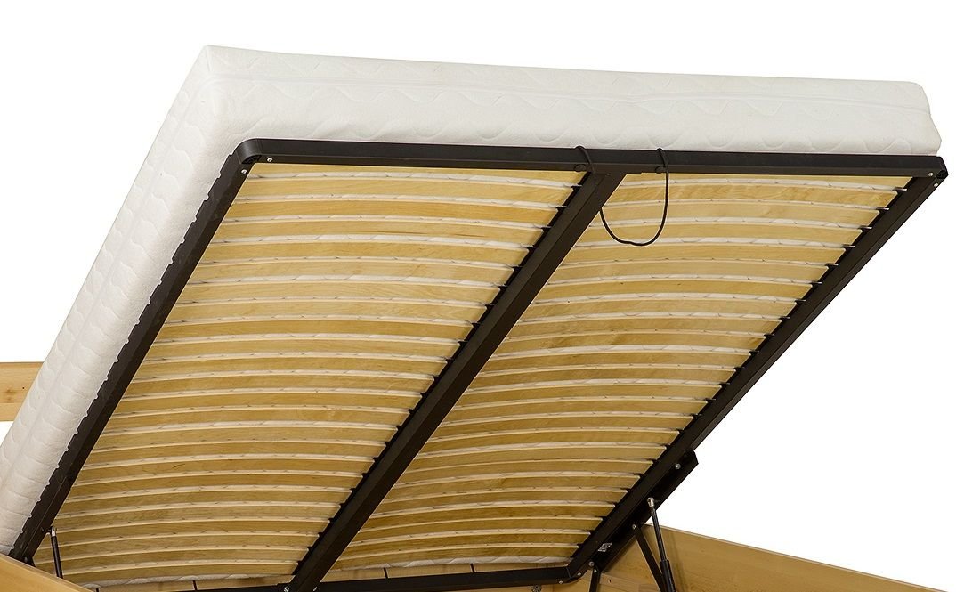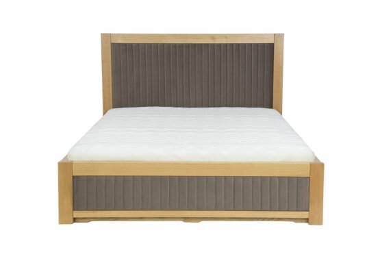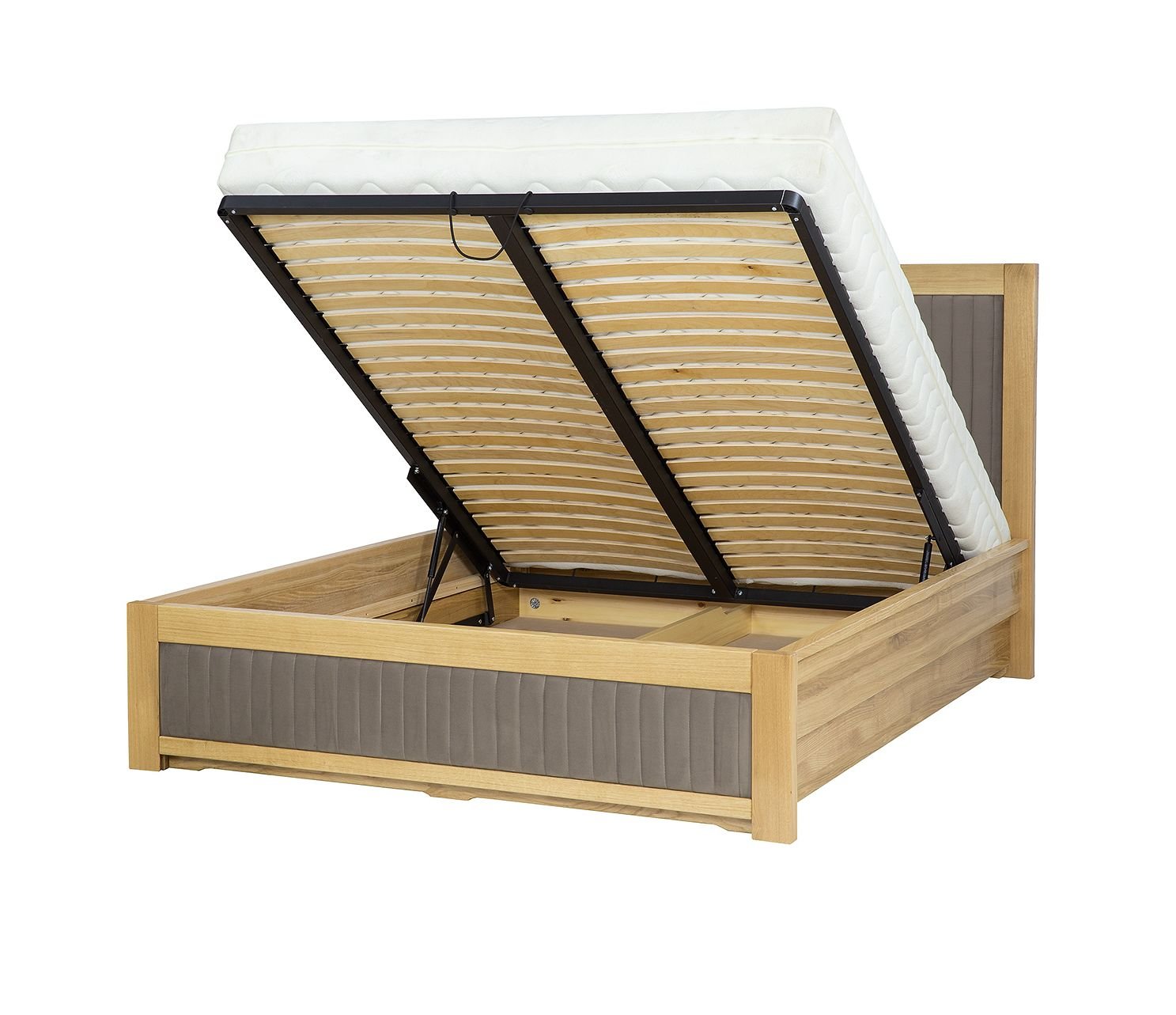 LK114 nowoczesne łóżko bukowe z pojemnikiem i tapicerowanym wezgłowiem dostępne w szerokościach: