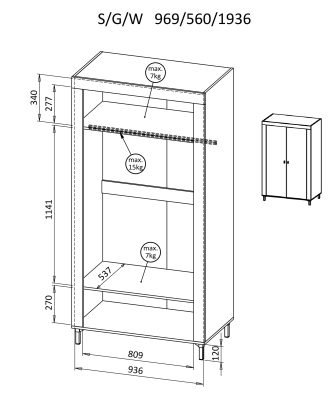 LOCA 01 szafa dwudrzwiowa w stylu GLAMOUR na nóżkach 100 cm