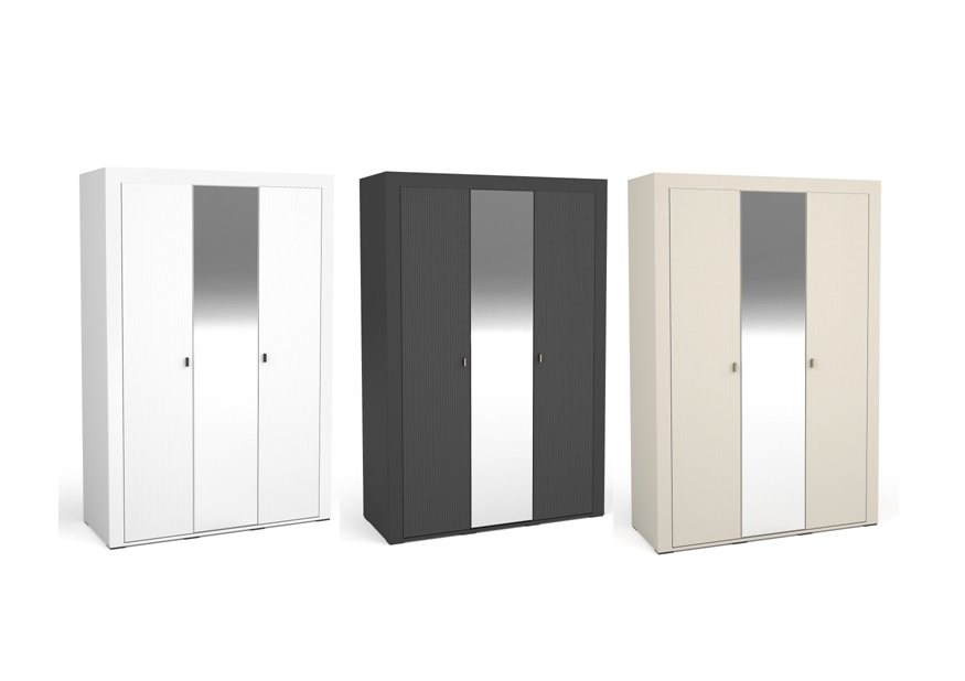 LOCA 02 szafa trzydrzwiowa z lustrem w stylu GLAMOUR – 140 cm – ryflowane fronty