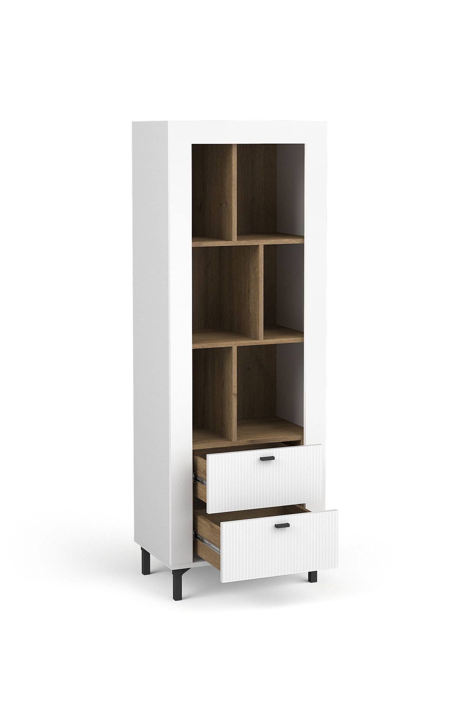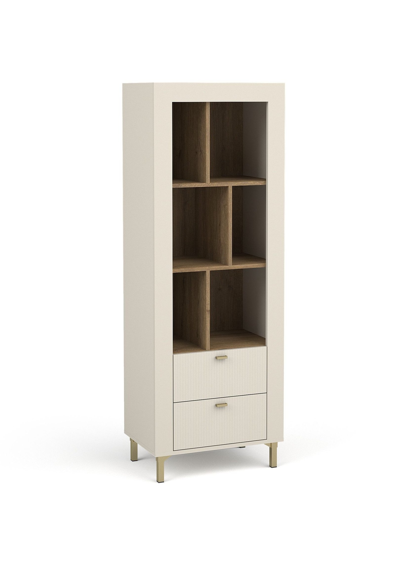 LOCA 04 niski otwarty regał z szufladami w stylu GLAMOUR na nóżkach 60 cm – ryflowane fronty