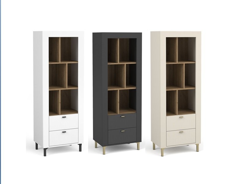 Napisz pierwszą opinię o „LOCA 04 niski otwarty regał z szufladami w stylu GLAMOUR na nóżkach 60 cm – ryflowane fronty”