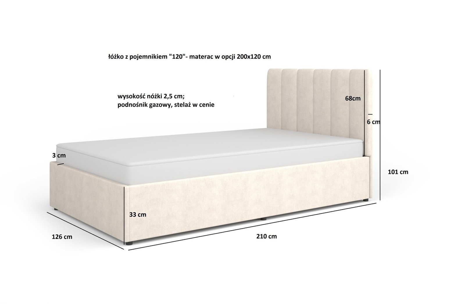 - pow. spania: 120 x 200 cm