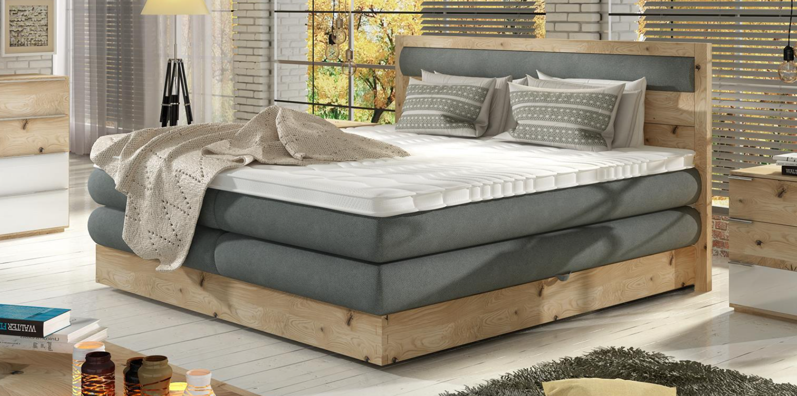 ŁÓŻKO KONTYNENTALNE NA DĘBOWEJ RAMIE DIORI