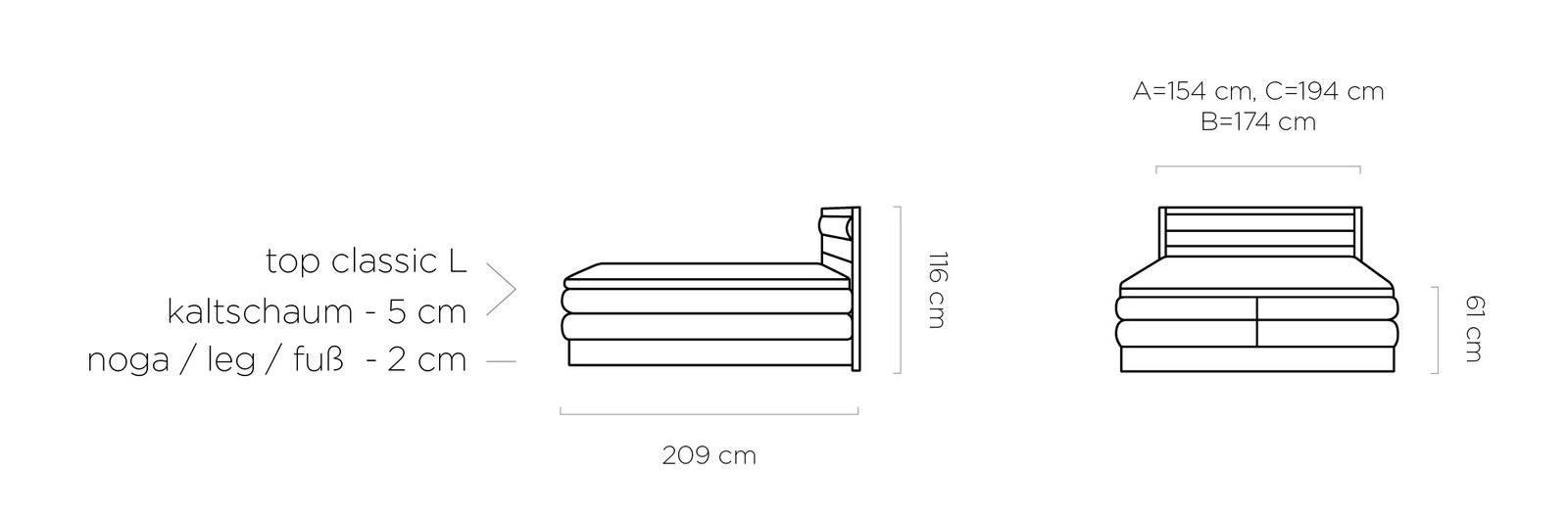 – długość: 209 cm
