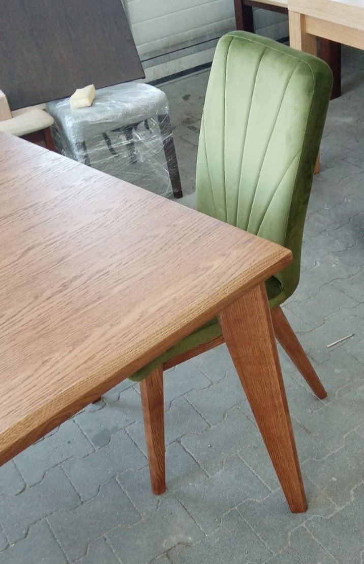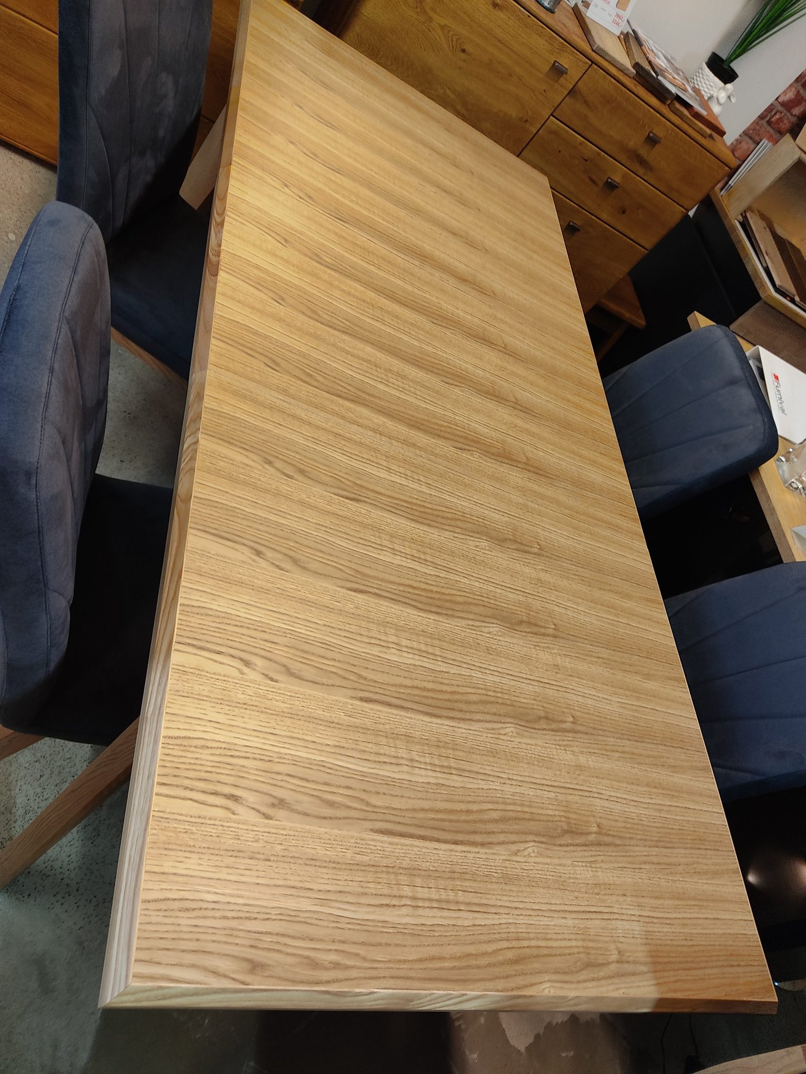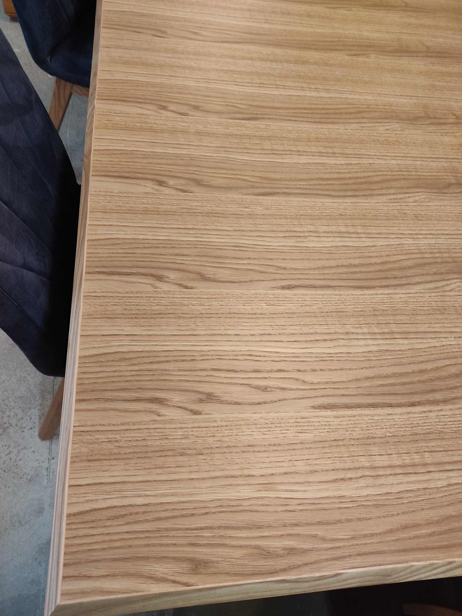 - blat stołu wykonany z płyty meblowej fornirowanej – fornir dębowy z boczną doklejką