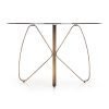 LUNGO jest to stół w oszczędnej formie. Niebanalne połączenie barwionego szkła wraz ze stabilnymi giętymi nogami, zrobi wrażenie na najbardziej wybrednych klientach. Wyrafinowana kolorystyka brązowe barwione szkło oraz kolory miedzi i starego złota na nogach, idealnie spisze się w eleganckich wnętrzach.