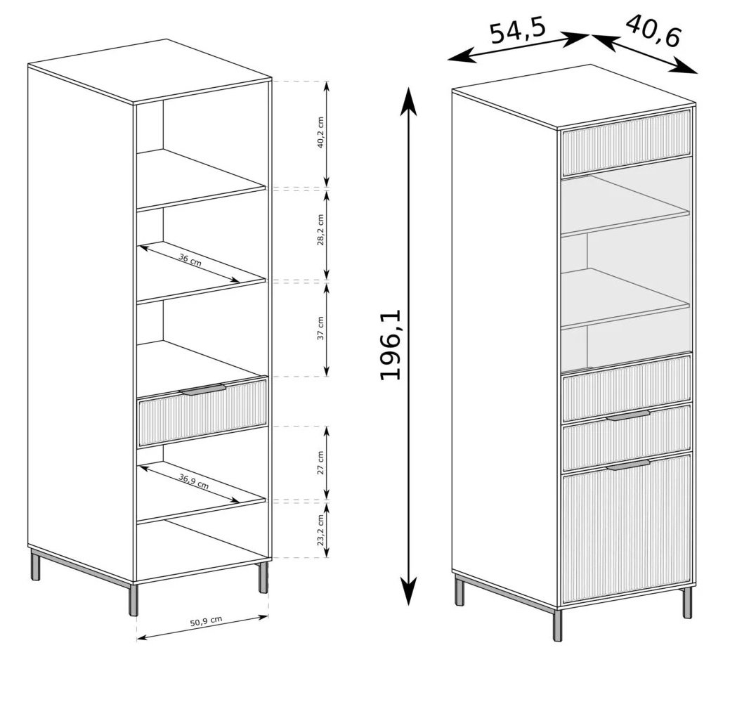 LUXURY – wysoka witryna z szufladą na nóżkach 55 cm