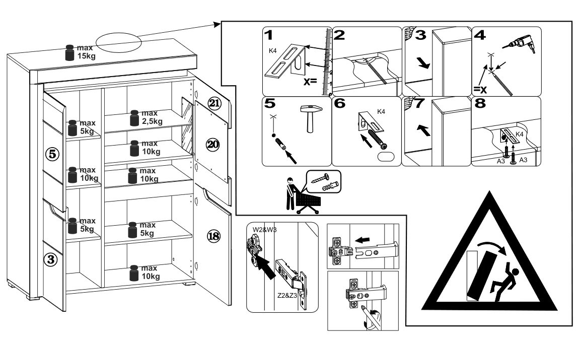 - system otwierania – zawiasy z cichym domykiem