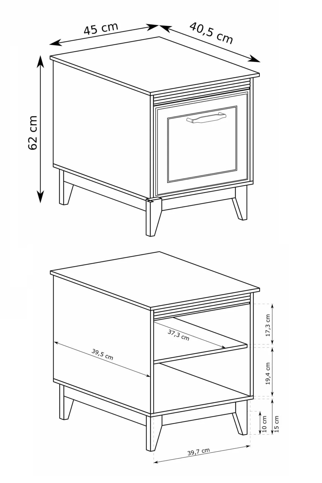 Napisz pierwszą opinię o „MODERN elegancka szafka nocna na nóżkach 45 cm CASHMERE – DĄB”