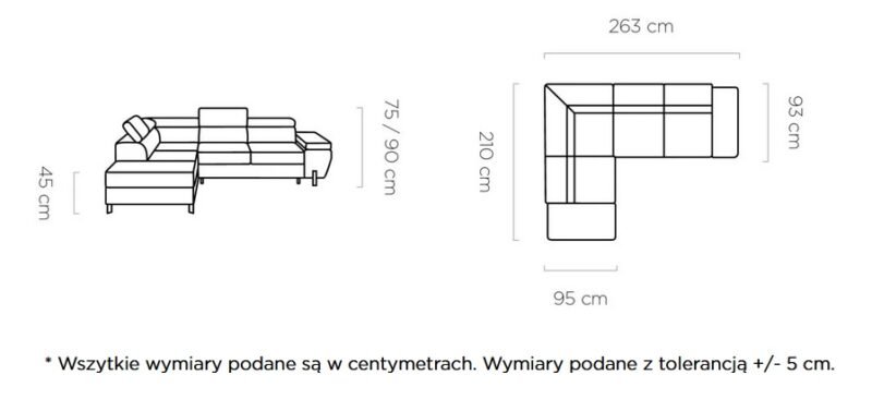 MOLINA L – narożnik z funkcją spania i pojemnikiem