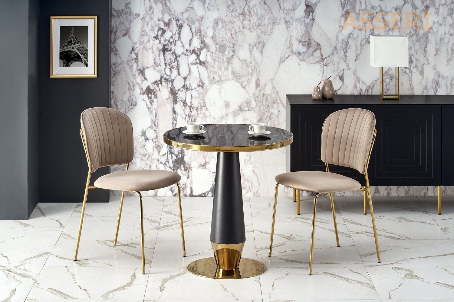 - Nogi – stal malowana proszkowo czarny / złoty