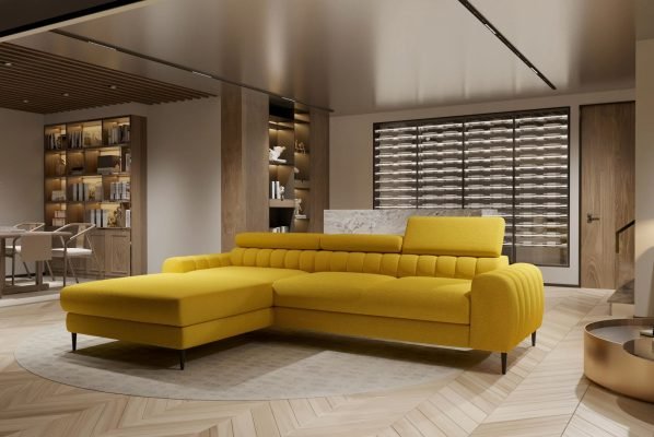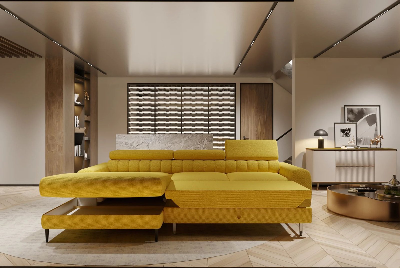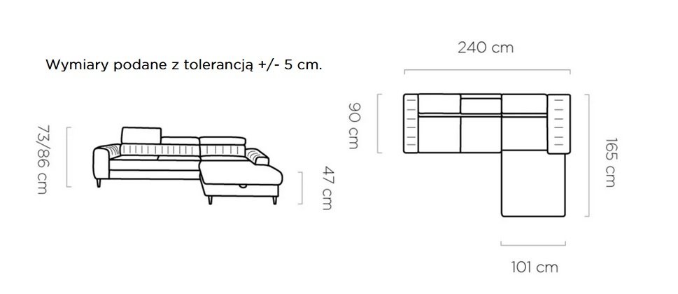 NAVAS – kompaktowy narożnik na nóżkach z funkcją spania i pojemnikiem 240 x 165 cm