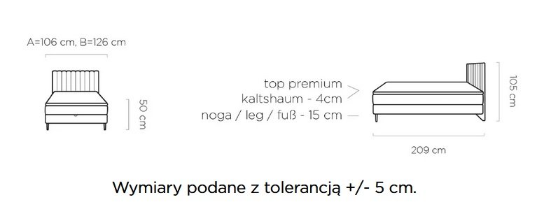 • Topper: łóżko bez toppera wierzchniego – należy go domówić oddzielnie