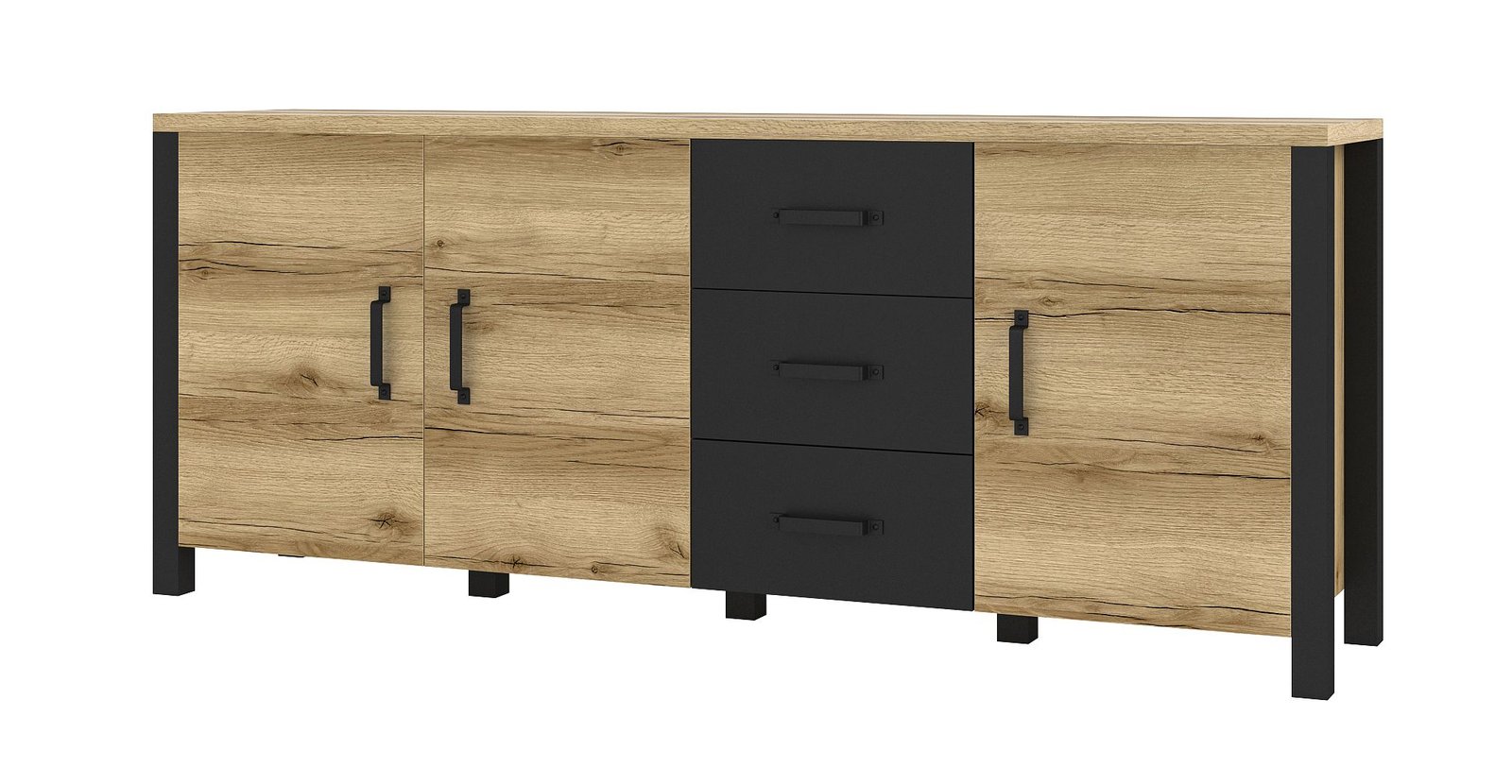 OLIN 47 komoda z szufladami w kolorze grand naturalny – czarny super mat 190 cm