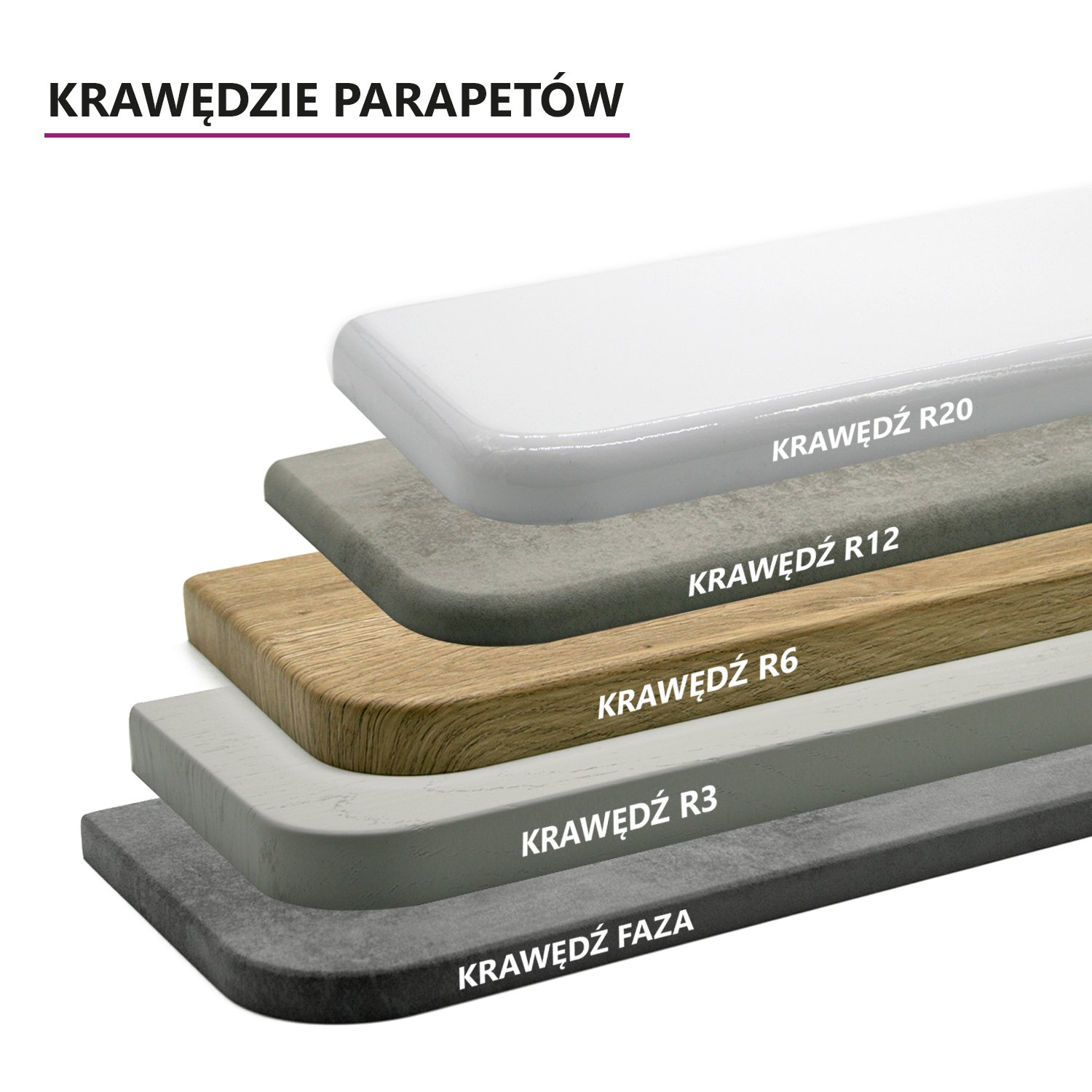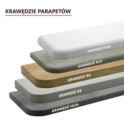 Wykonujemy parapety standardowe ale również niestandardowe, przeznaczone do łączenia, a na specjalnie życzenie klienta wykonamy parapety z indywidualnymi wycięciami. Dodatkowo klient ma możliwość wyboru kilku krawędzi i narożników z naszej oferty.