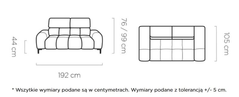 PLAZA 2 sofa ruchomymi zagłówkami – 192 cm