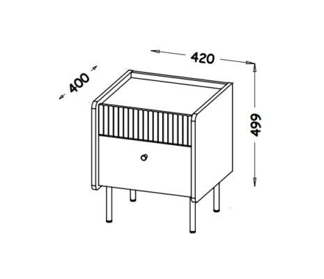 Prosta, mała i wygodna szafka nocna, idealna do sypialni. Można na nią położyć budzik, szklankę wody lub telefon. W środku znajdują się dwie szuflady z których górna posiada ozdobny ryflowany front w kolorze czarnym.