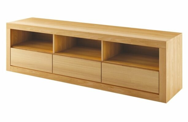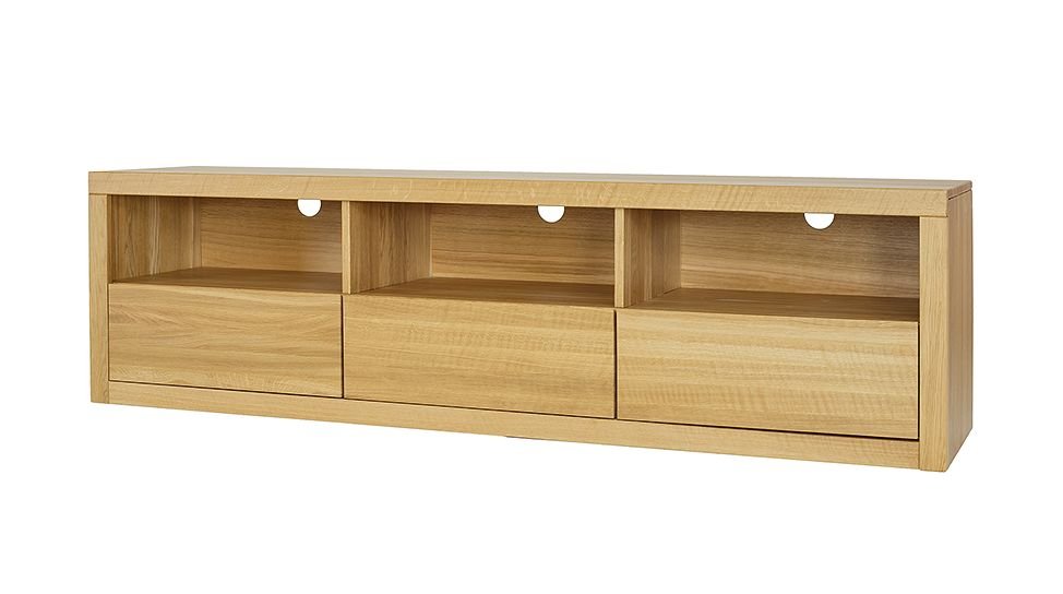 QUATRO – to niewielka, dębowa szafka RTV.  To mebel zaprojektowany w nowoczesnym stylu, który powstał z myślą o organizacji funkcjonalnego salonu. Posiada trzy otwarte półki, na których ustawisz sprzęt RTV. Poręczne bezuchwytowe szuflady pomieszczą domowe drobiazgi.