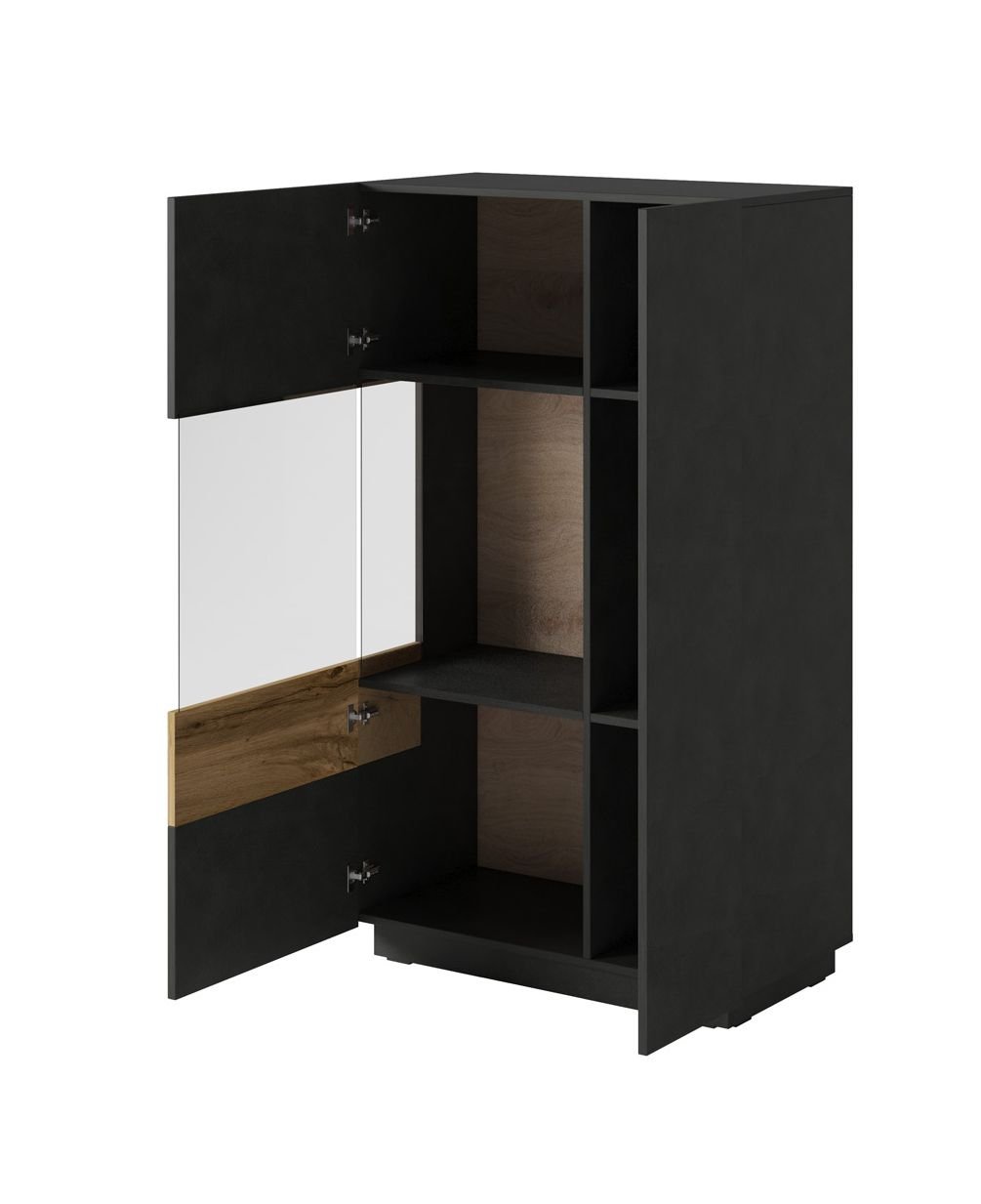 SILKE-42 komoda, witryna dwudrzwiowa z przeszkleniem – 80 cm – BIAŁY POŁYSK – DĄB WOTAN – BETON – MATERA