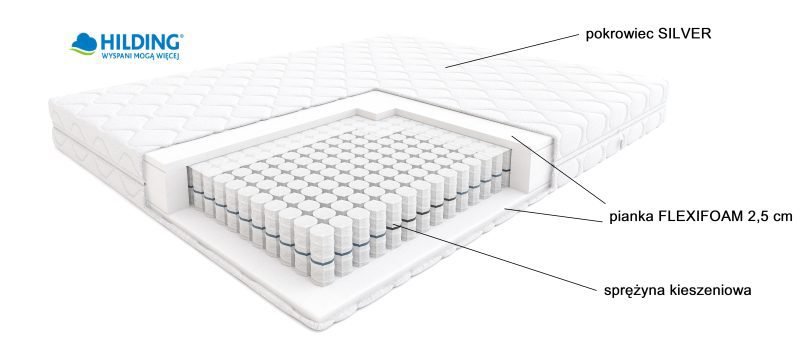 Materac dostępny w antyalergicznym pokrowcu Silver z możliwością prania.