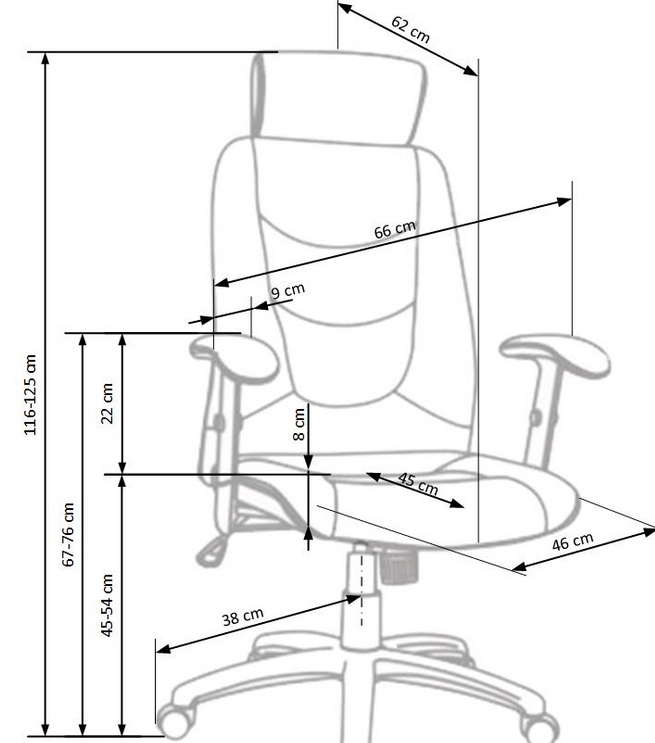 Wykonany z eko skóry w kolorze czarnym. W  wyposażeniu fotela znalazły się regulowane podłokietniki a także mechanizm TILT umożliwiający blokadę w jednej pozycji jak i możliwość ” bujania się”. System regulacji wysokości umożliwia dostosować fotel do własnych potrzeb.