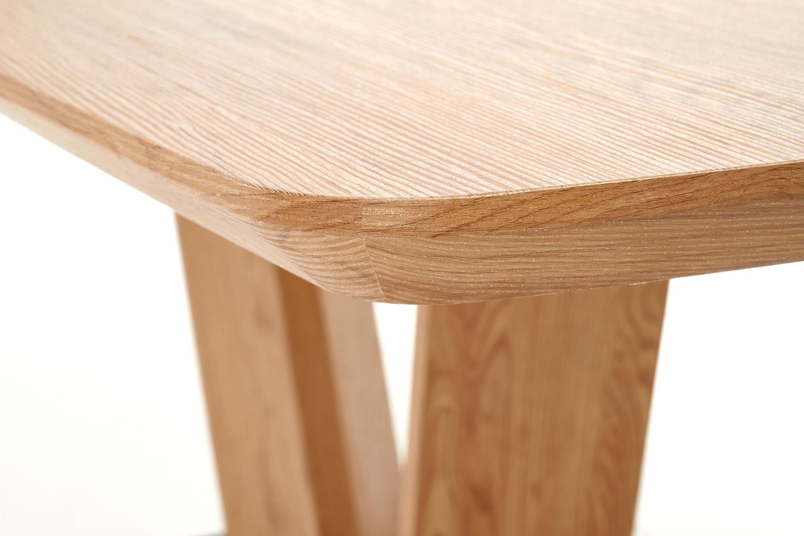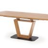 Stół BLACKY do salonu i jadalni wykonany jest z płyty MDF laminowanej w kolorze dąb złoty, podstawa to stal malowana proszkowo w kolorze czarnym. Blat stołu posiada zaokrąglone kanty, dzięki czemu nie obijamy się o jego krawędzie, a także jest bezpieczniejszy.
