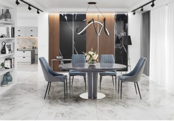 Innowacyjny stół rozkładany RICARDO o średnicy 120 cm z funkcją rozłożenia do 160 cm. Całość prezentuje się bardzo masywnie a jednocześnie elegancko i szykownie.