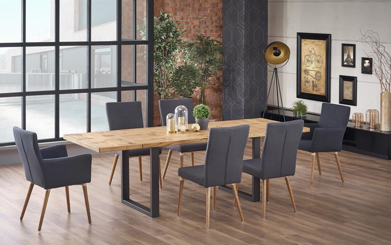 • materiał: blat – płyta fornirowana, na obrzeżach drewno lite / nogi – stal malowana proszkowo