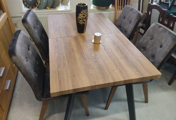 Rozkładany stół BERLIN w stylu LOFT (na zdjęciu krzesła Kamil – wykonane pod wymiar)