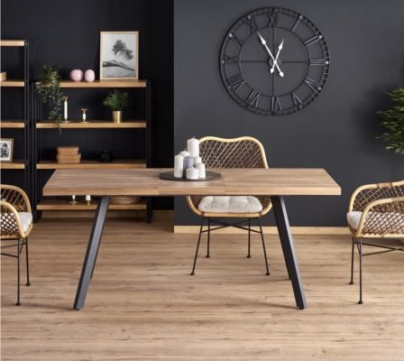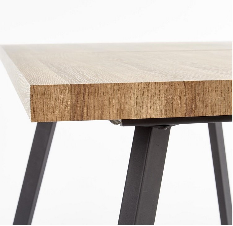 Stelaż stołu BERLIN składa się z materiału MDF okleinowanego i stali malowanej proszkowo na kolor czarny. Te materiały sprawiają, że stół jest stabilnym i wytrzymałym meblem. Przewaga koloru drewna nad elementami stalowymi sprawia, że za pomocą tego modelu można także stworzyć klimat domowego ogniska.