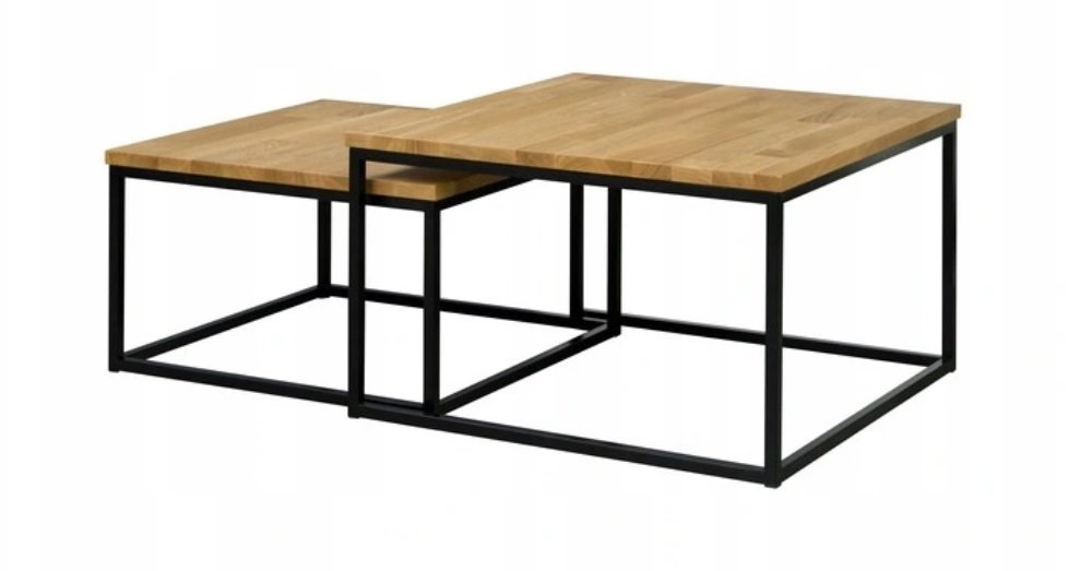 Rewelacyjny zestaw dwóch stolików z blatem z litego drewna dębowego to propozycja dla wnętrz w stylu loftowym, ale również dla pomieszczeń tradycyjnych.