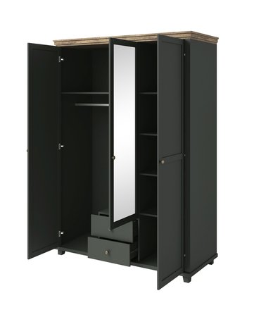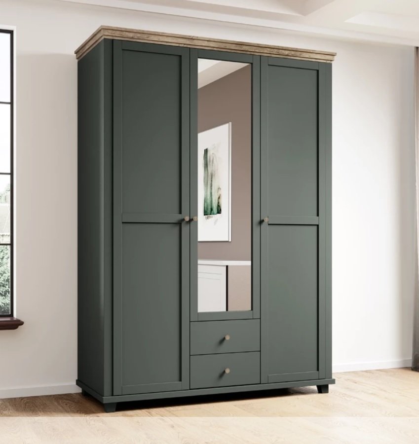 Szafa z 3 drzwiami oraz 2 szufladami EVORA w kolorze Dąb Lefkas / Zielony (24ZRJU19)